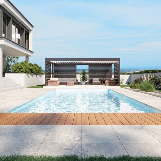 Utöver dess praktiska funktioner ger lamelltäcket också en snygg och stilren touch till poolområdet. Det finns olika färger och material att välja mellan, så att du kan anpassa lamelltäcket efter din pools design och stil.