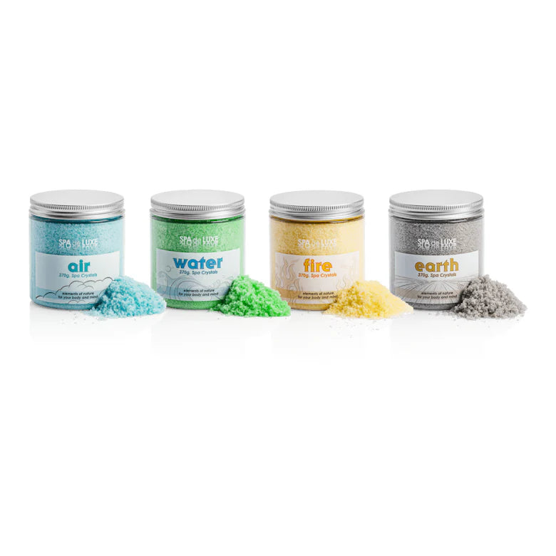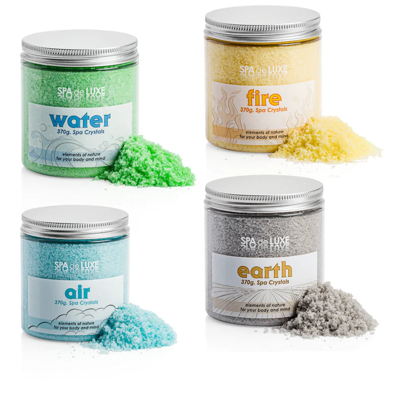 Badsalt med en ljuvlig doft för ditt spabad. AquaFinesse Spa de Luxe Crystals består av fyra ljuvligt doftande badsalter som bygger på de fyra elementen: luft, vatten, eld och jord. För en ytterst avkopplande upplevelse. Det här badsaltet är speciellt utvecklat för spabad och är därför 100 % säkert, både vad gäller utrustningen och vattenbehandlingen.
