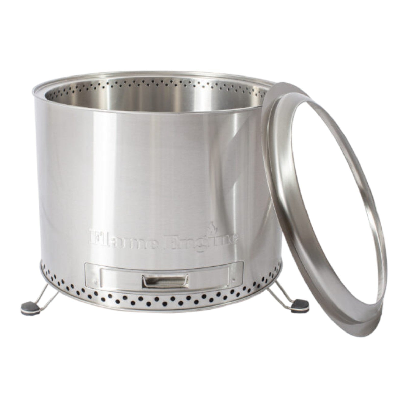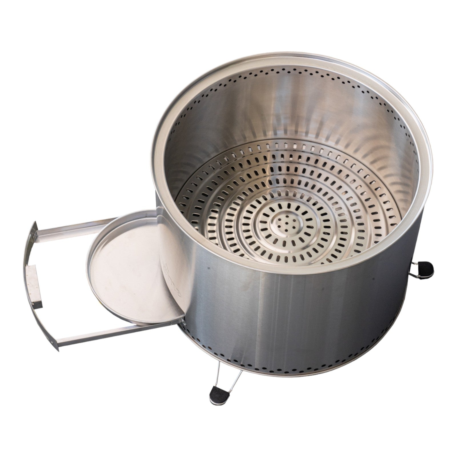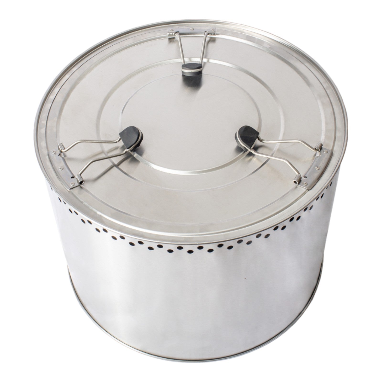- Rostfritt lock (tillbehör) för att släcka elden eller användas som sidobord eller pall
