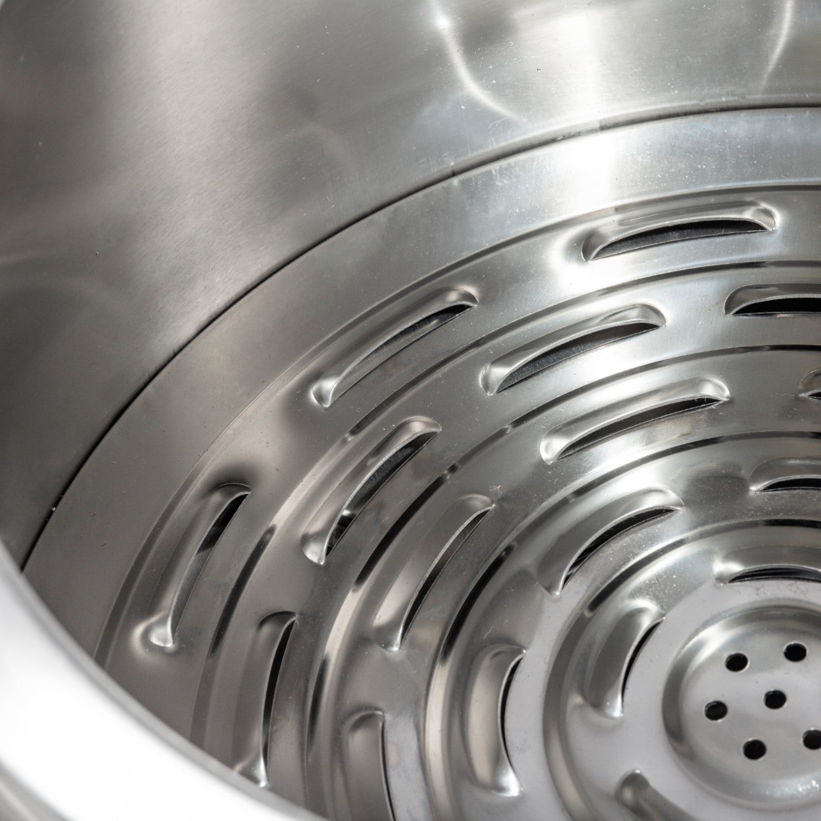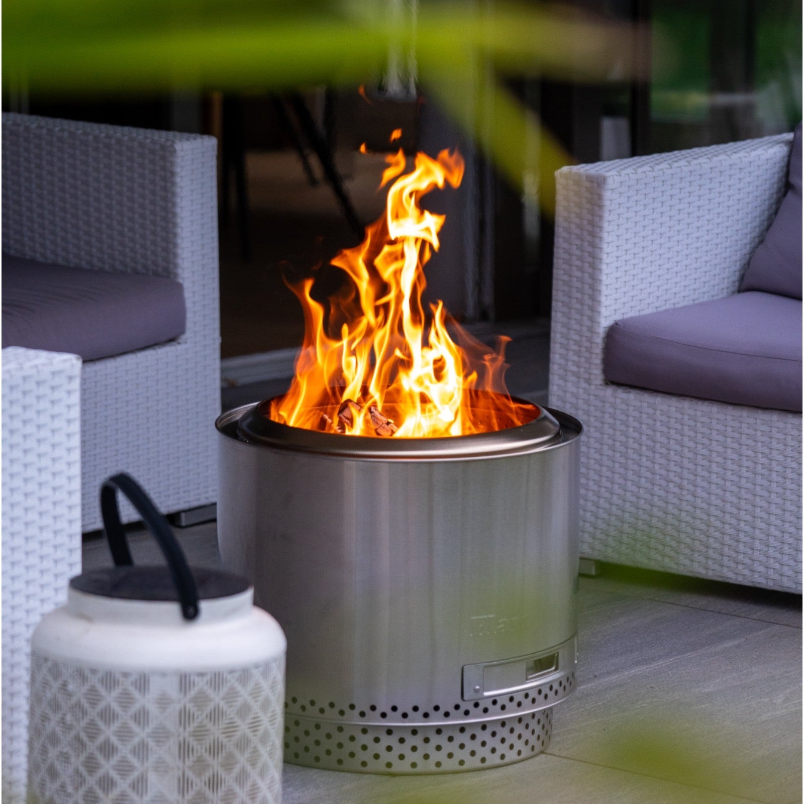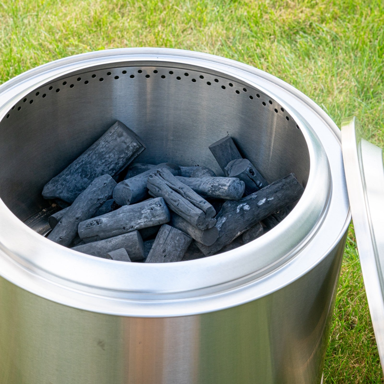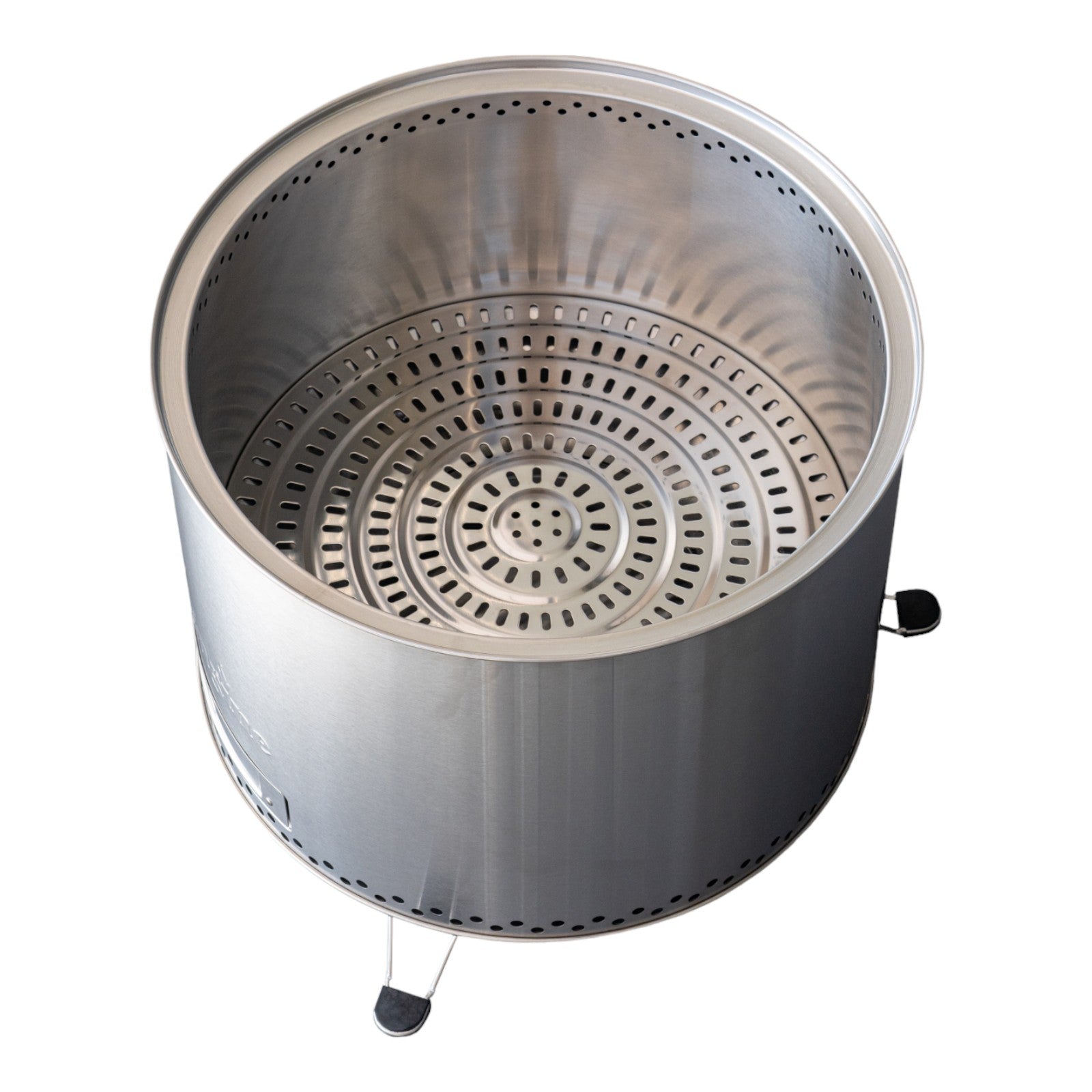 - Rostfritt lock (tillbehör) för att släcka elden eller användas som sidobord eller pall