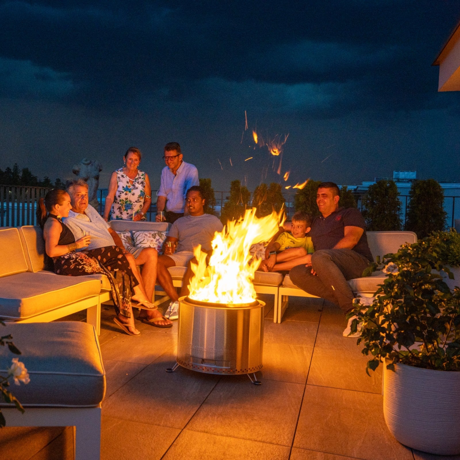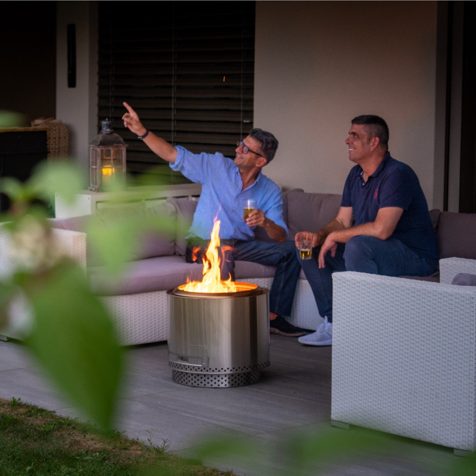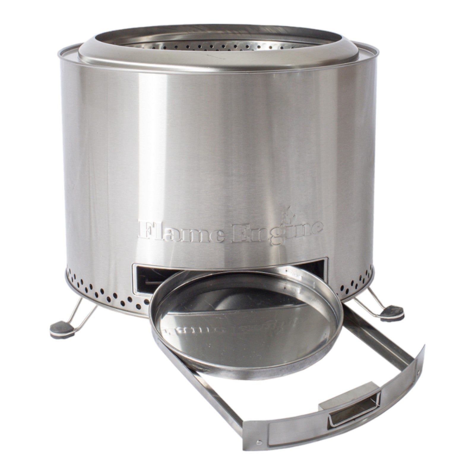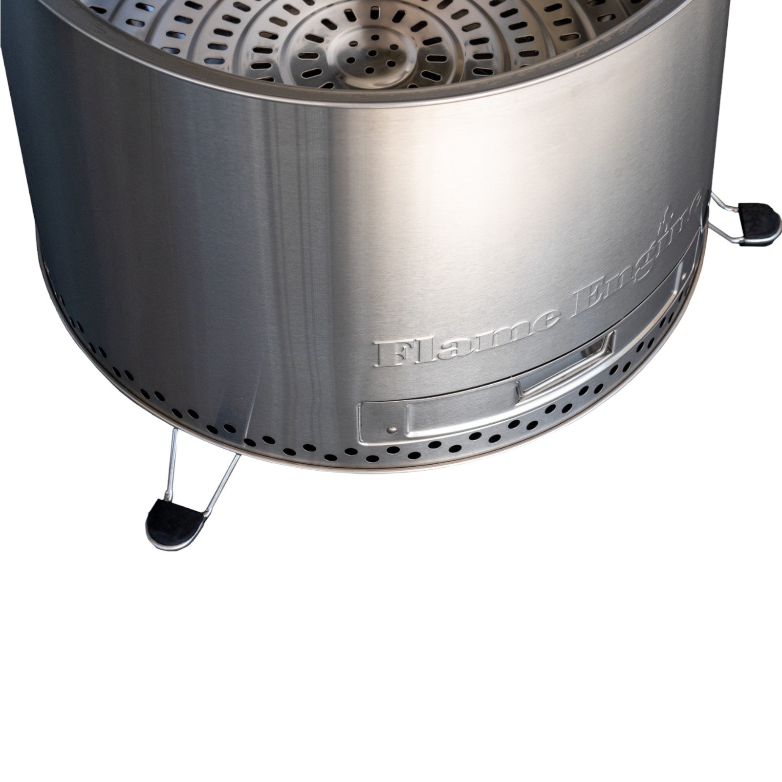 Förutom att användas som eldstad kan vår Flame Engine Buddy också användas som grill. Ett tillval med grillgaller kommer snart att finnas tillgänglig för att tillaga läckra måltider. Även en av oss rekommenderad ved hake möjliggör en jämn fördelning av glödande aska för att uppnå bättre grillupplevelser och för att rikta kvarvarande aska mot askfacket.