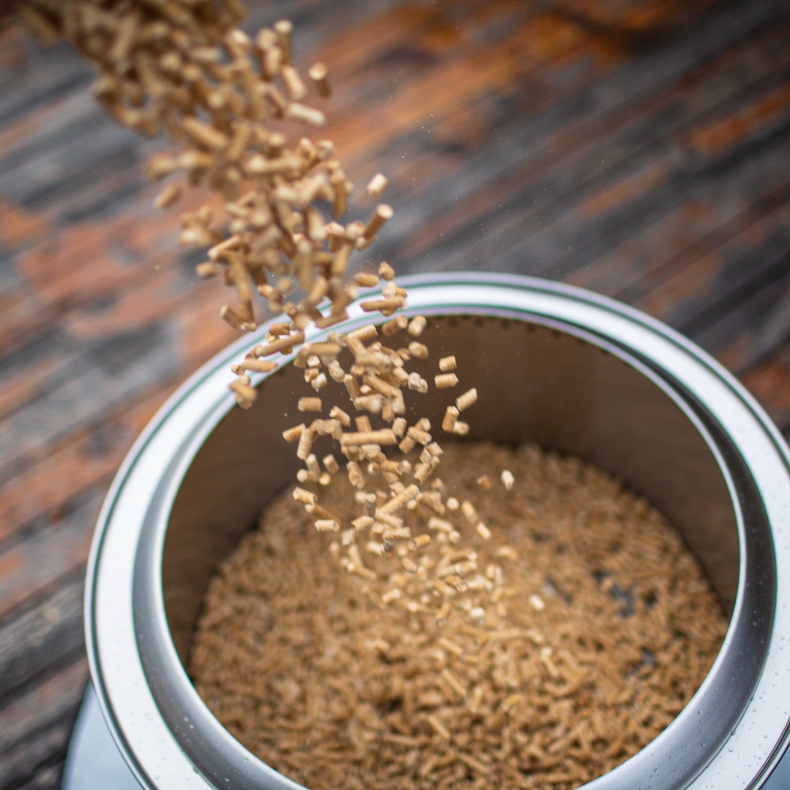 Asklådan under brännarens basplatta används för att tömma askan. Den rostfria kroppen kan enkelt rengöras med en trasa och lämpligt rengöringsmedel.