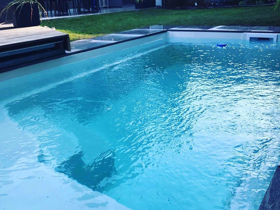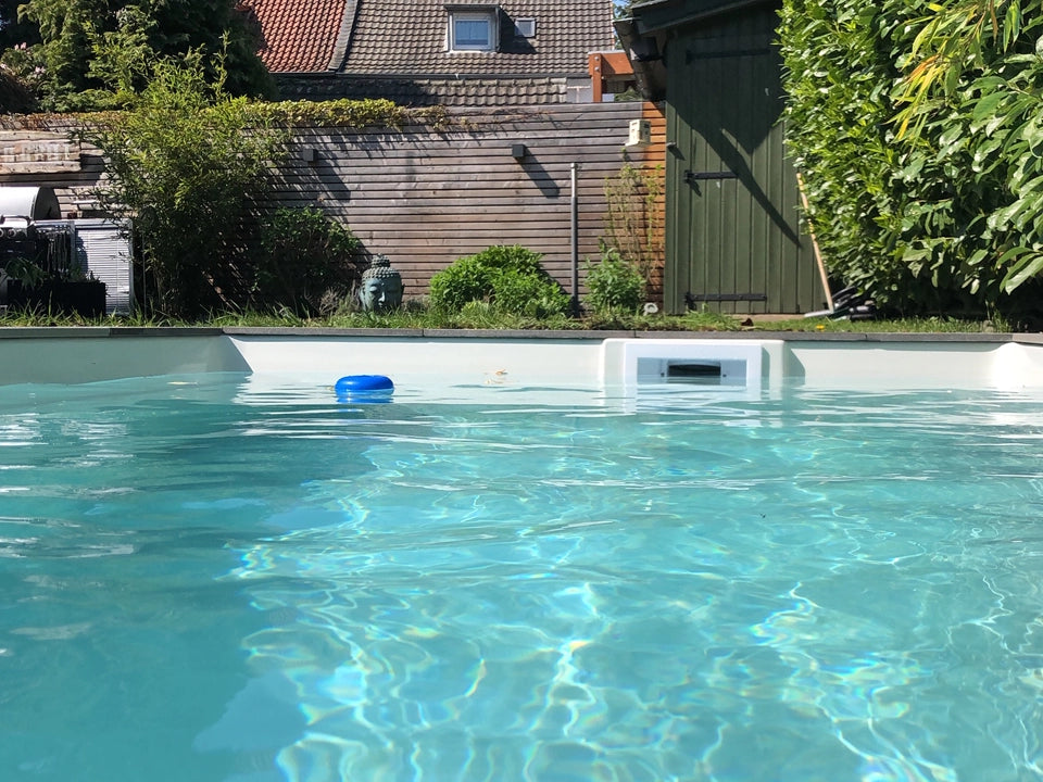 Strategisk trappa till vänster i poolen. Finns i mindre storlekar och mindre djup.