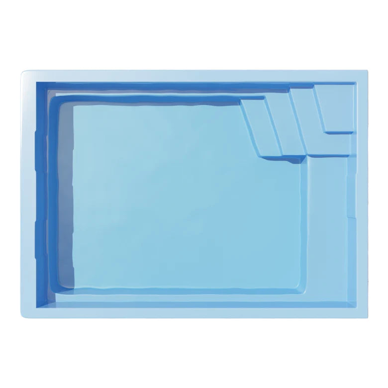 Alla våra modeller av glasfiberpool är stålförstärkta på sidan för extra stabilitet och hållfasthet. Denna glasfiberpool är så stabil att den klarar att lyftas utan stag i mitten av poolen. Denna glasfiberpool är mycket tålig och byggd med hållbart material som har lång livslängd.