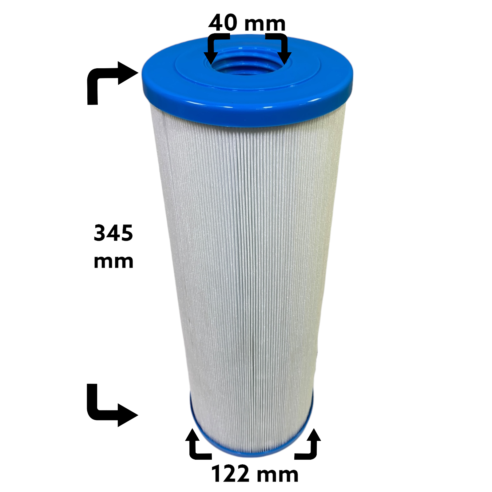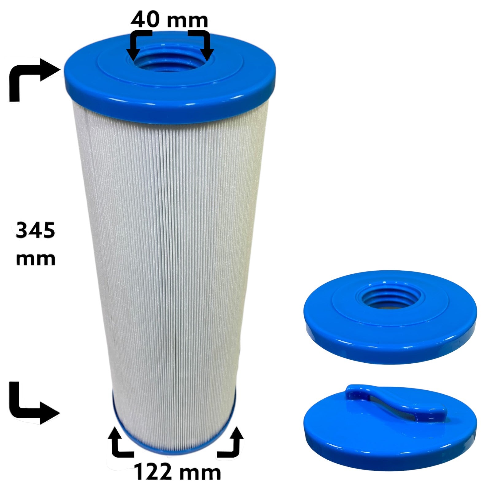 Var noggrann när ni mäter era filter så att ni får rätt modell, generellt så gör det inget att filtrets kropp är lite mindre eller lite större då flera filter kan passa fler modeller, rådfråga oss om du har funderingar om detta filter passar just ert spabad. Det viktigaste är att ni hittar samma mått på anslutningen samt att det är samma typ av topp som ert befintliga filter.