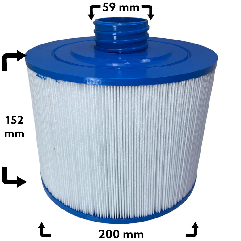 Var noggrann när ni mäter era filter så att ni får rätt modell, generellt så gör det inget att filtrets kropp är lite mindre eller lite större då flera filter kan passa fler modeller, rådfråga oss om du har funderingar om detta filter passar just ert spabad. Det viktigaste är att ni hittar samma mått på anslutningen samt att det är samma typ av topp som ert befintliga filter.