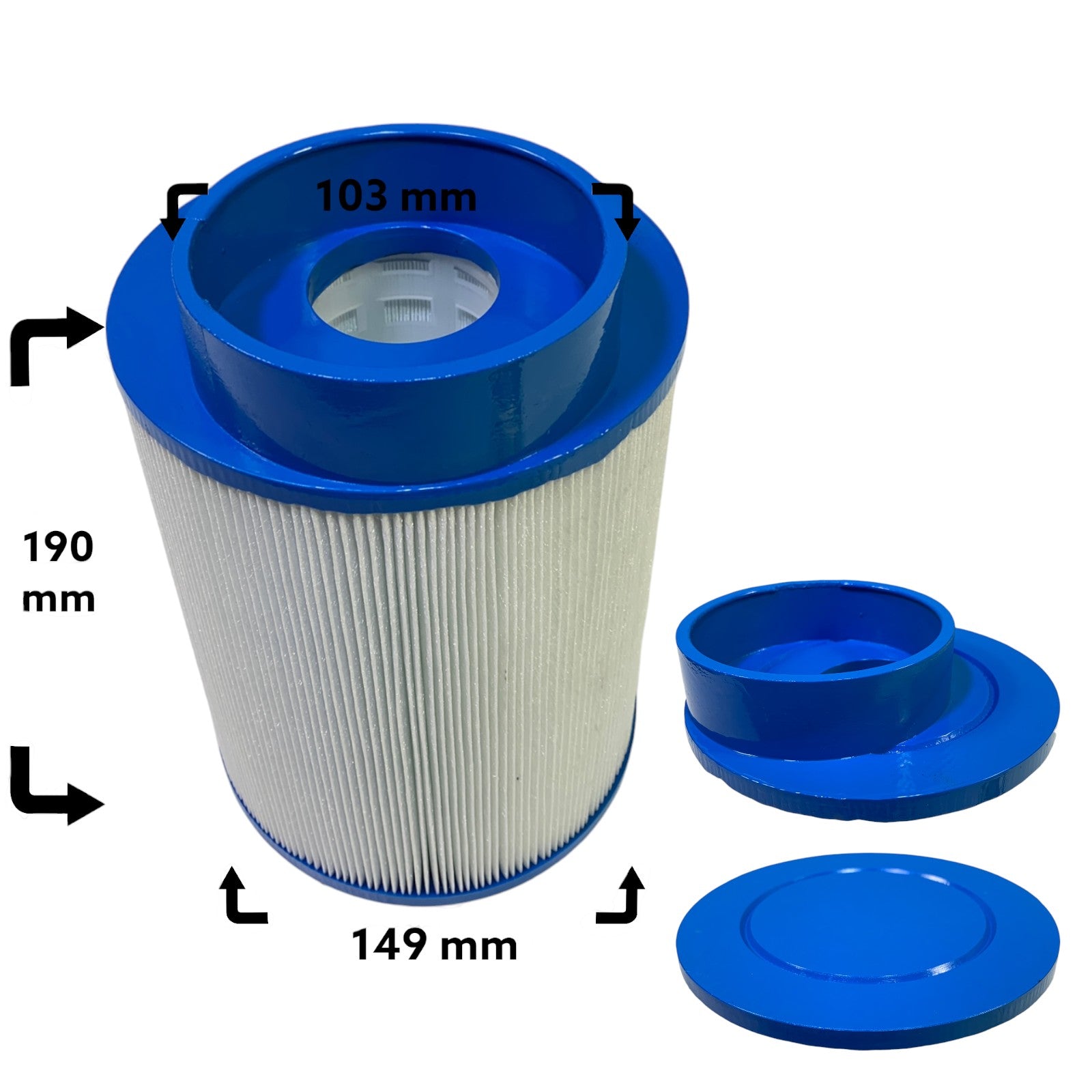 Var noggrann när ni mäter era filter så att ni får rätt modell, generellt så gör det inget att filtrets kropp är lite mindre eller lite större då flera filter kan passa fler modeller, rådfråga oss om du har funderingar om detta filter passar just ert spabad. Det viktigaste är att ni hittar samma mått på anslutningen samt att det är samma typ av topp som ert befintliga filter.
